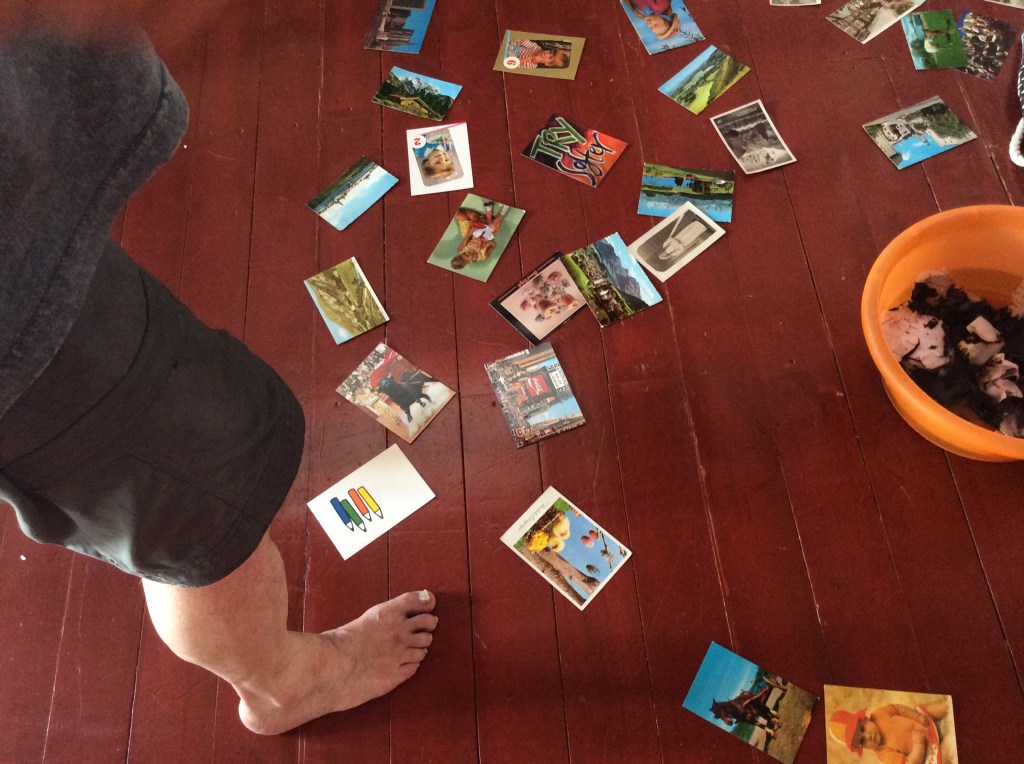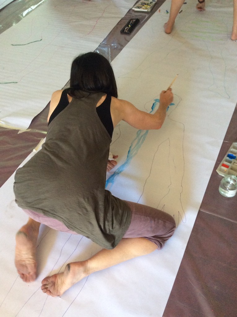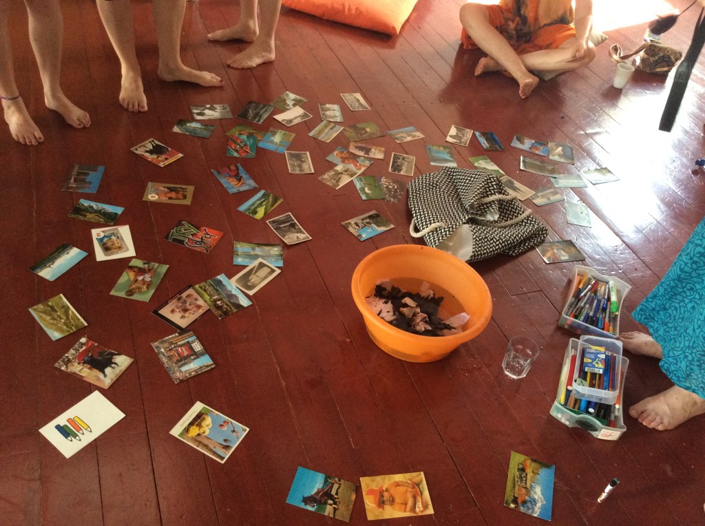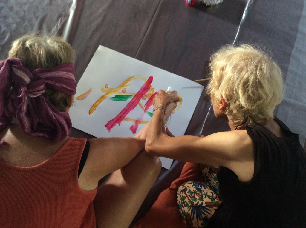 There is opportunity for participants to explore the use of chance and accident and find new ways to explore their own visual language. Exercises are done individually, in pairs and also in groups, small and large. Sometimes I invite participants to work in silence and other times I invite different ways of expression that support creativity.